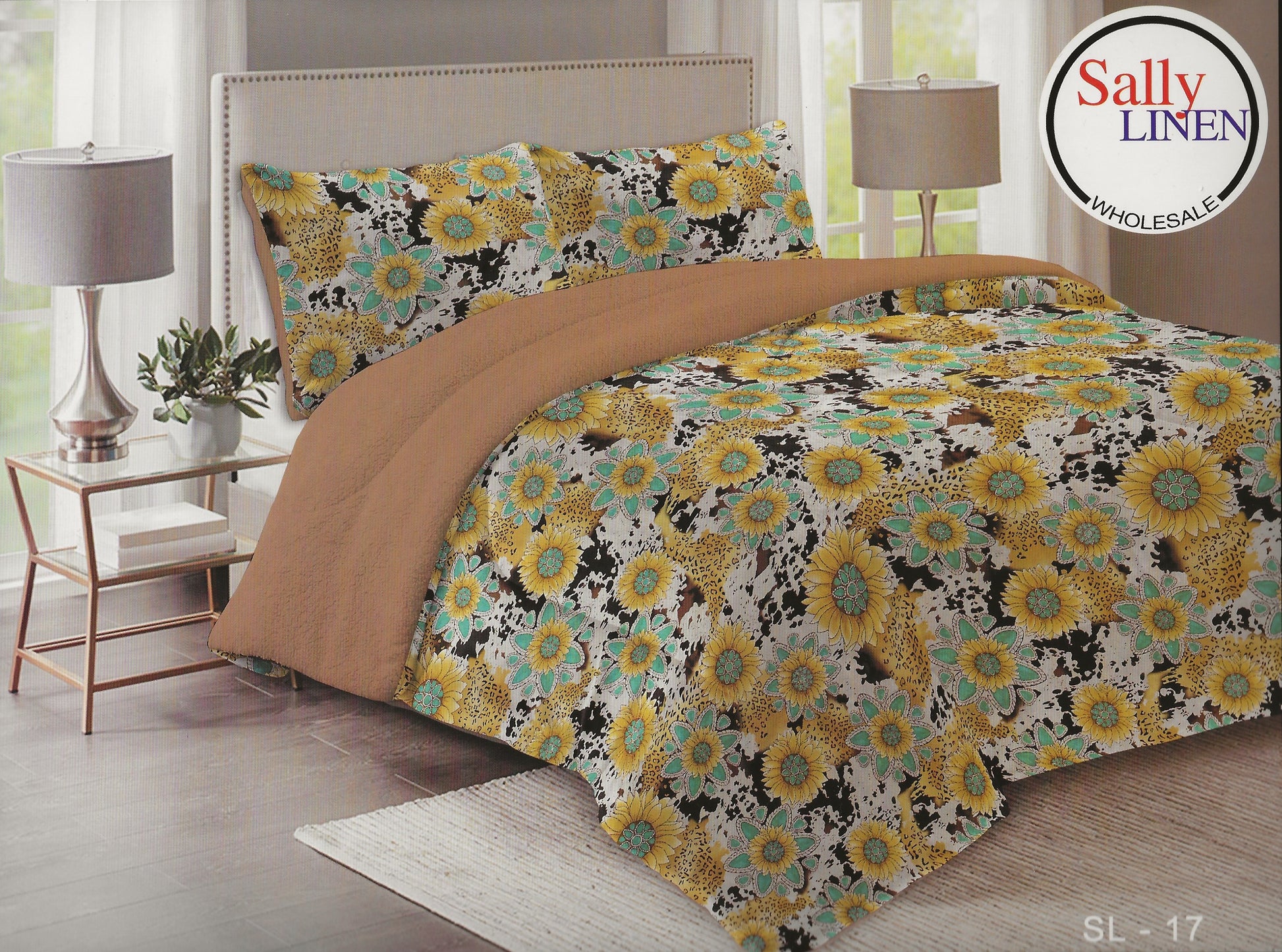 Cow Print Sunflower Borrego/Sherpa Blanket Set.