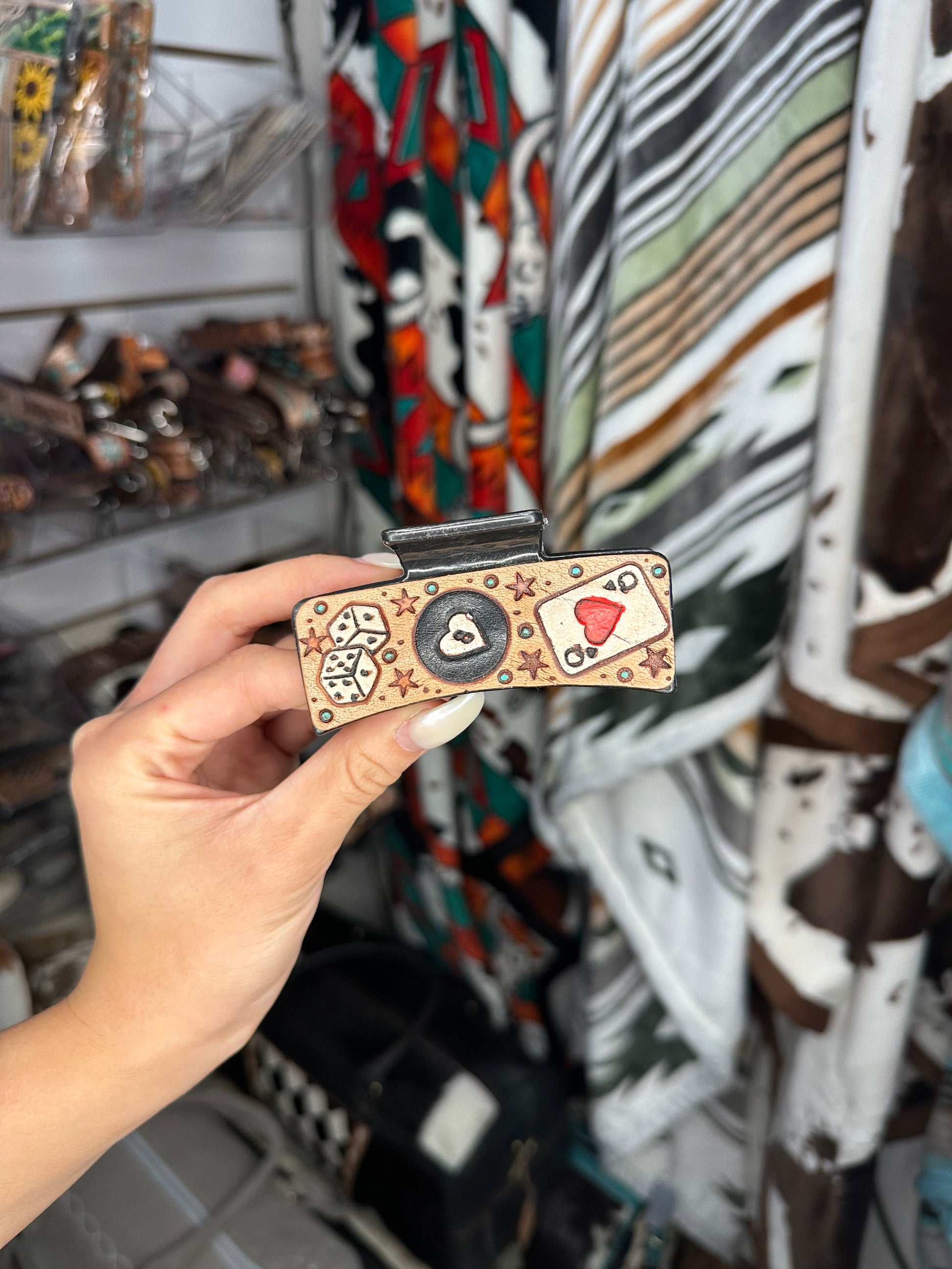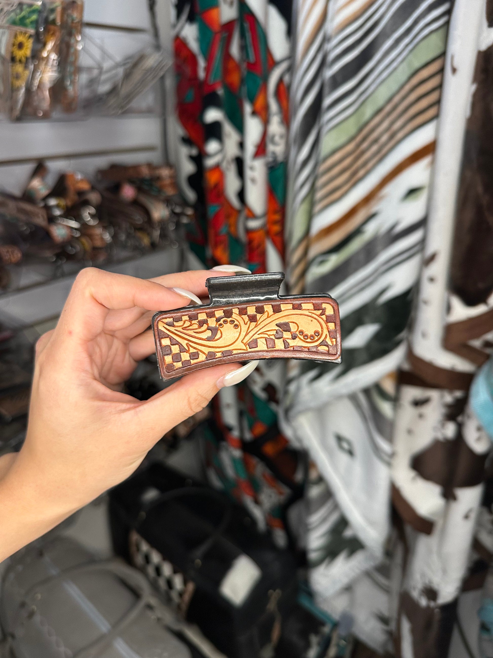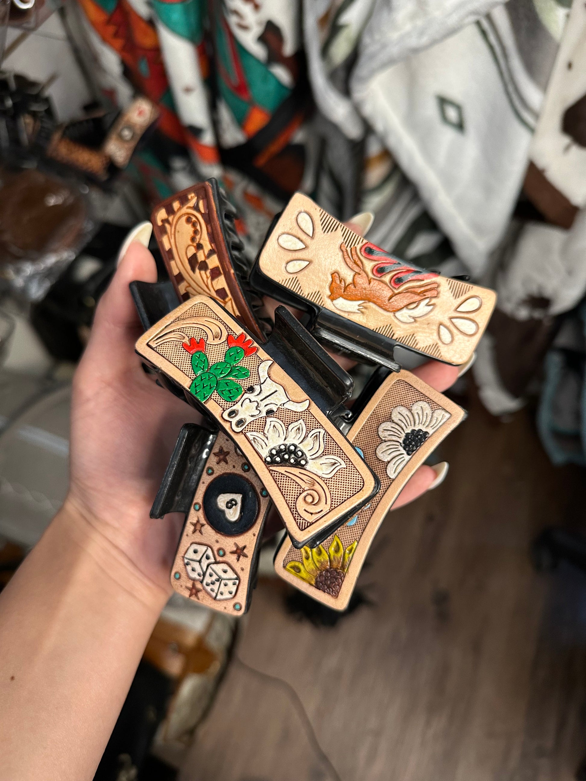 These western-themed claw clips add a fun, rustic touch to any hairstyle with designs inspired by classic western style. Featuring bold patterns and earthy tones, they’re an easy way to bring a little cowgirl charm to your everyday look.