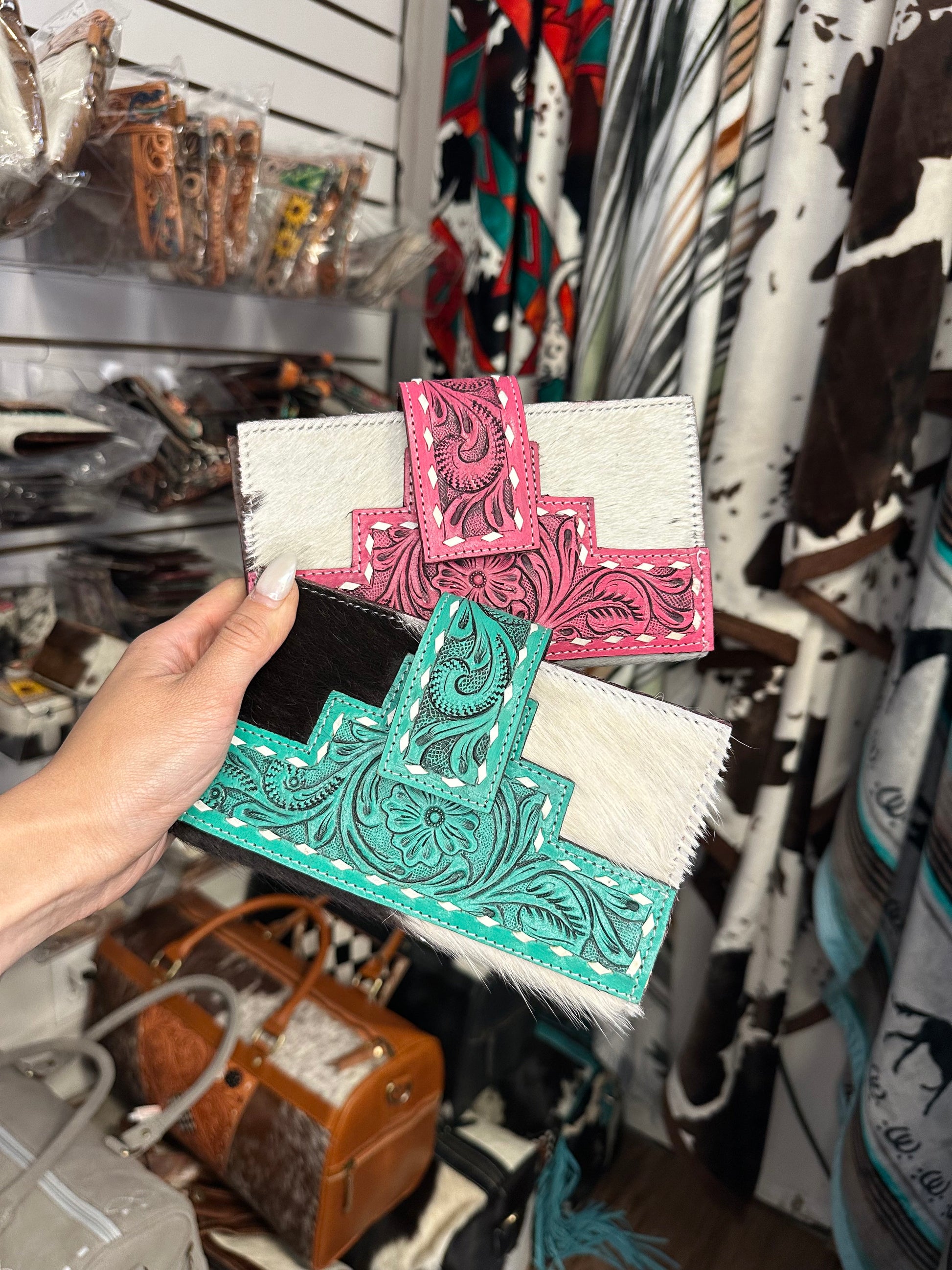 Genuine Western Tooled Hair-On Cowhide Clutch Wallet